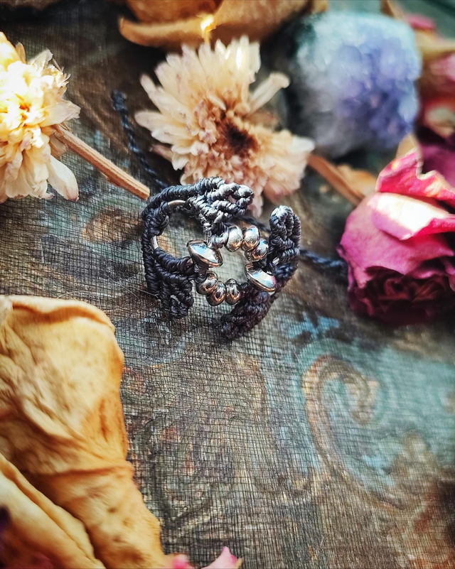 Bague artisanale réalisée avec un fil bleu d’orage 🌩️, une teinte profonde et vibrante rappelant le ciel avant la tempête. Son design est sublimé par un élément en cote de maille ⛓️, qui apporte une touche de caractère, et un motif feuille 🍃 délicat, ajoutant douceur et inspiration naturelle. L’ensemble crée un bijou harmonieux, mêlant puissance, élégance et esprit boho.